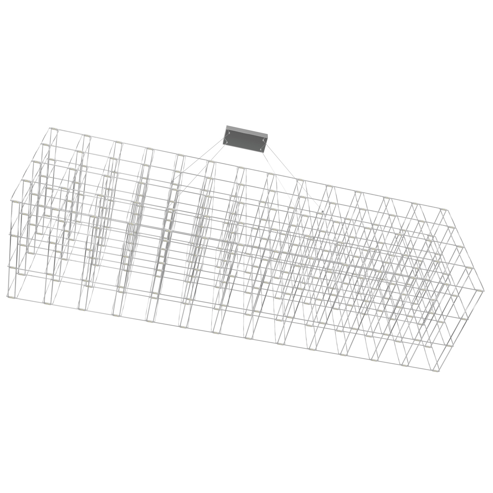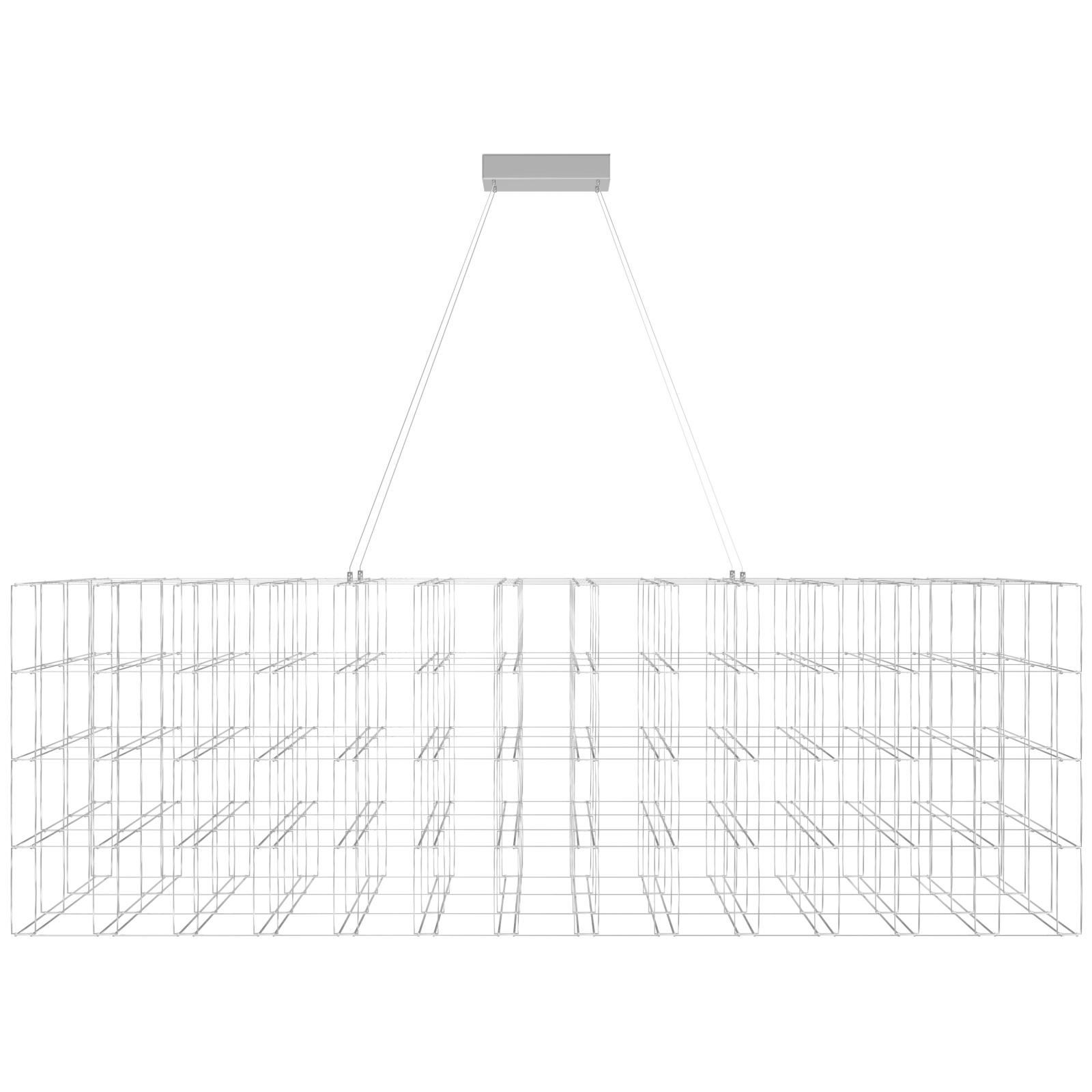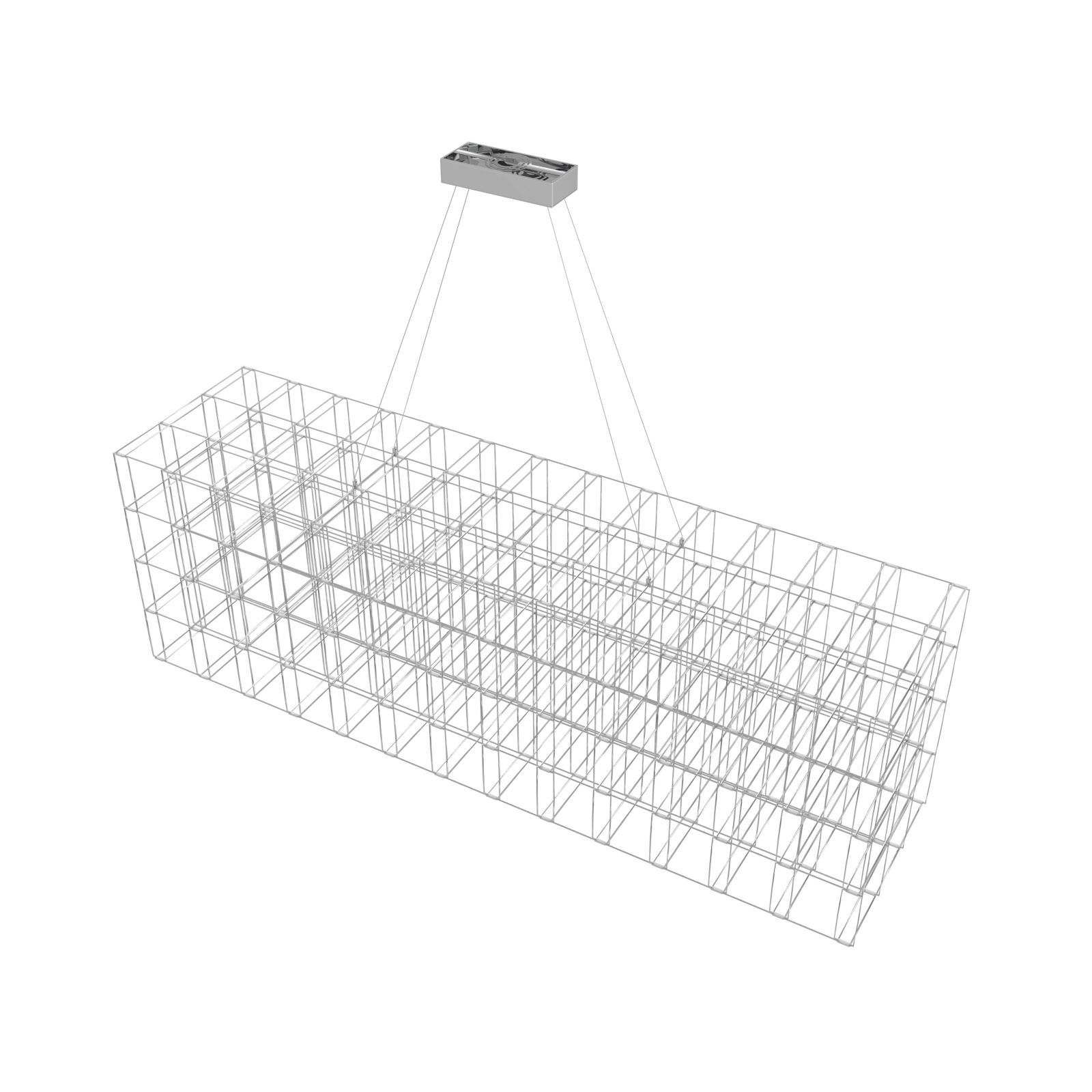- This fixture showcases a bold rectangular form made entirely of chrome-finished metal wires arranged in a perfect grid pattern—creating a striking sense of structure and depth