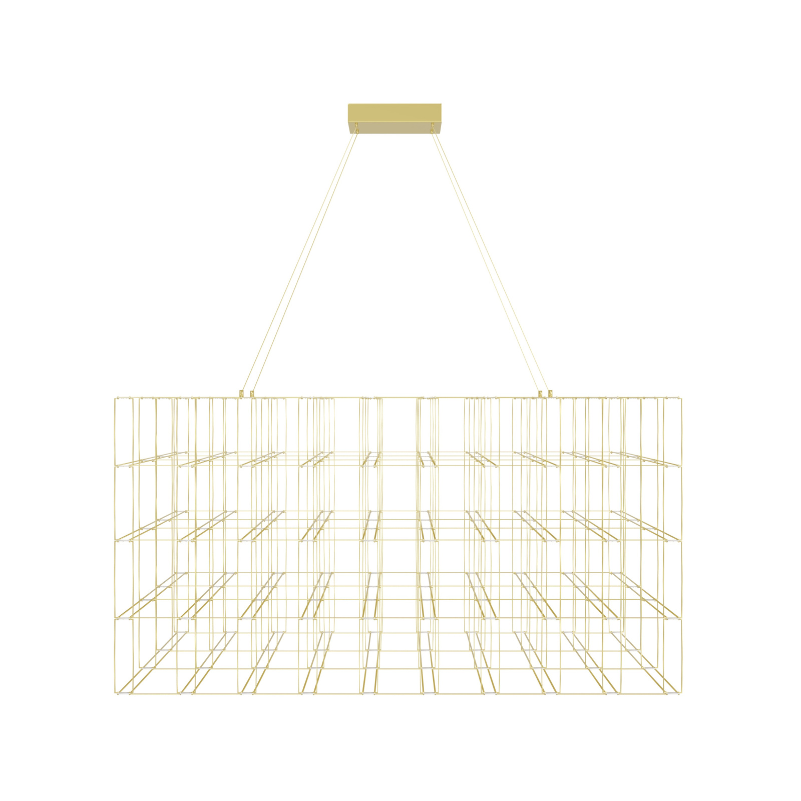 - This fixture showcases a bold rectangular form made entirely of chrome-finished metal wires arranged in a perfect grid pattern—creating a striking sense of structure and depth