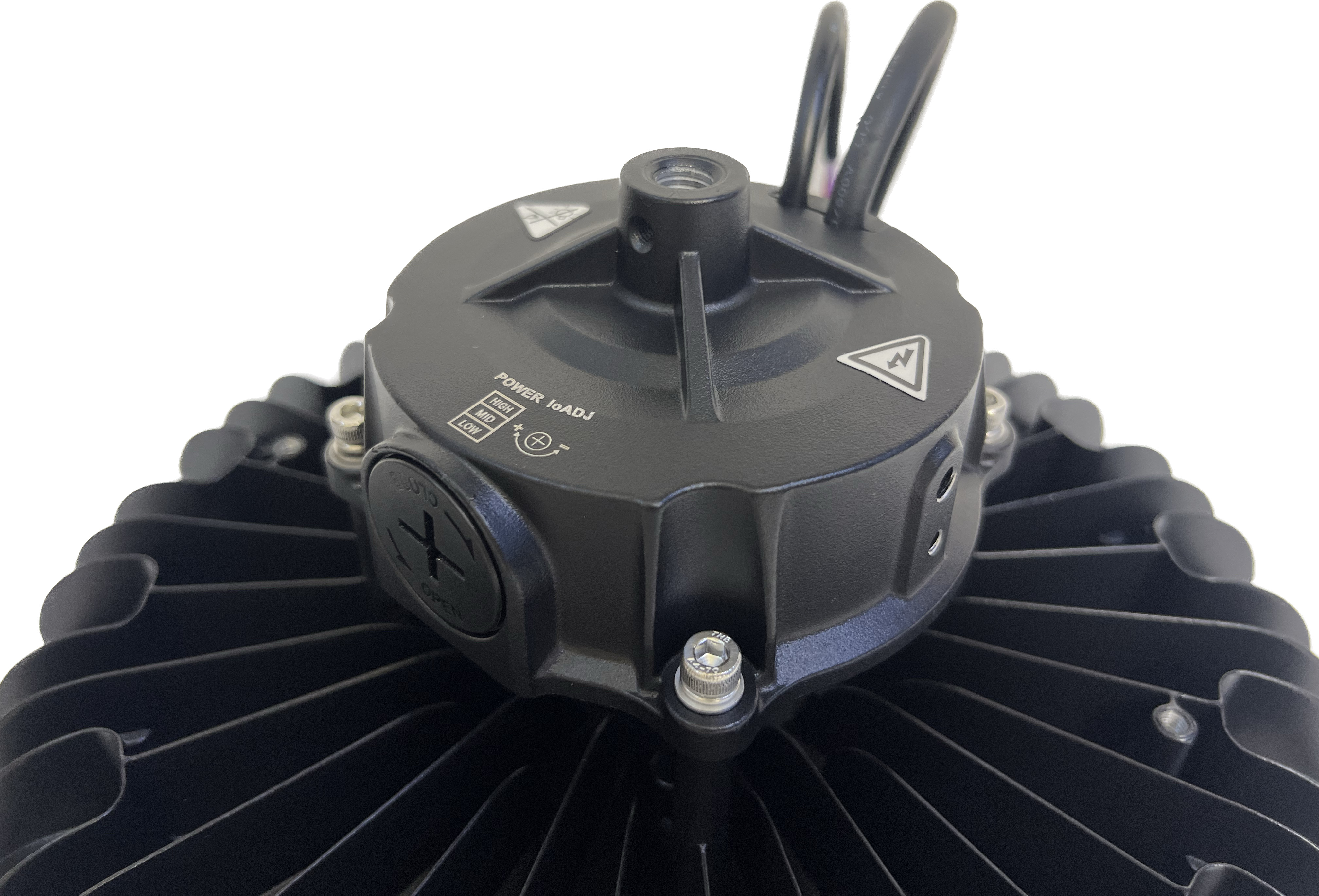DESIGN. LED UFO HIGH BAY with Q-base is high efficient with a 150lm/W output. Die-cast aluminum housing with excellent heat dissipation along with an anti-glare PC lens provide many years of use. It can operate in temperatures ranging from -40 to 140°F. It is designed to operate on 120-277V circuits with a 0-10V dimmable driver. Surge protection 6kV protects the fixture from voltage spikes and current surges.