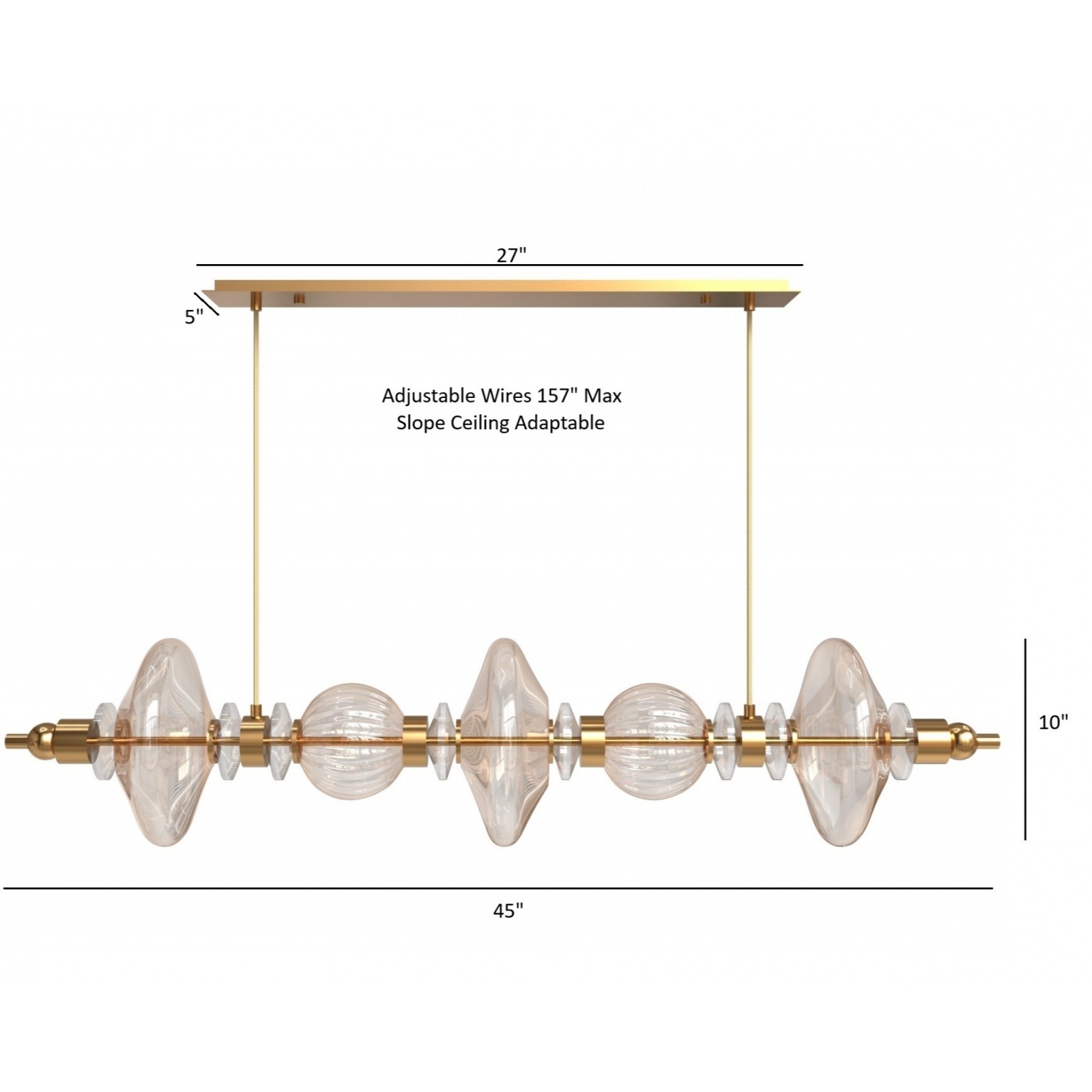 Avra 5-Light 45"W Linear LED Pendant in Aged Brass/Clear Glass Finish by Avenue Lighting