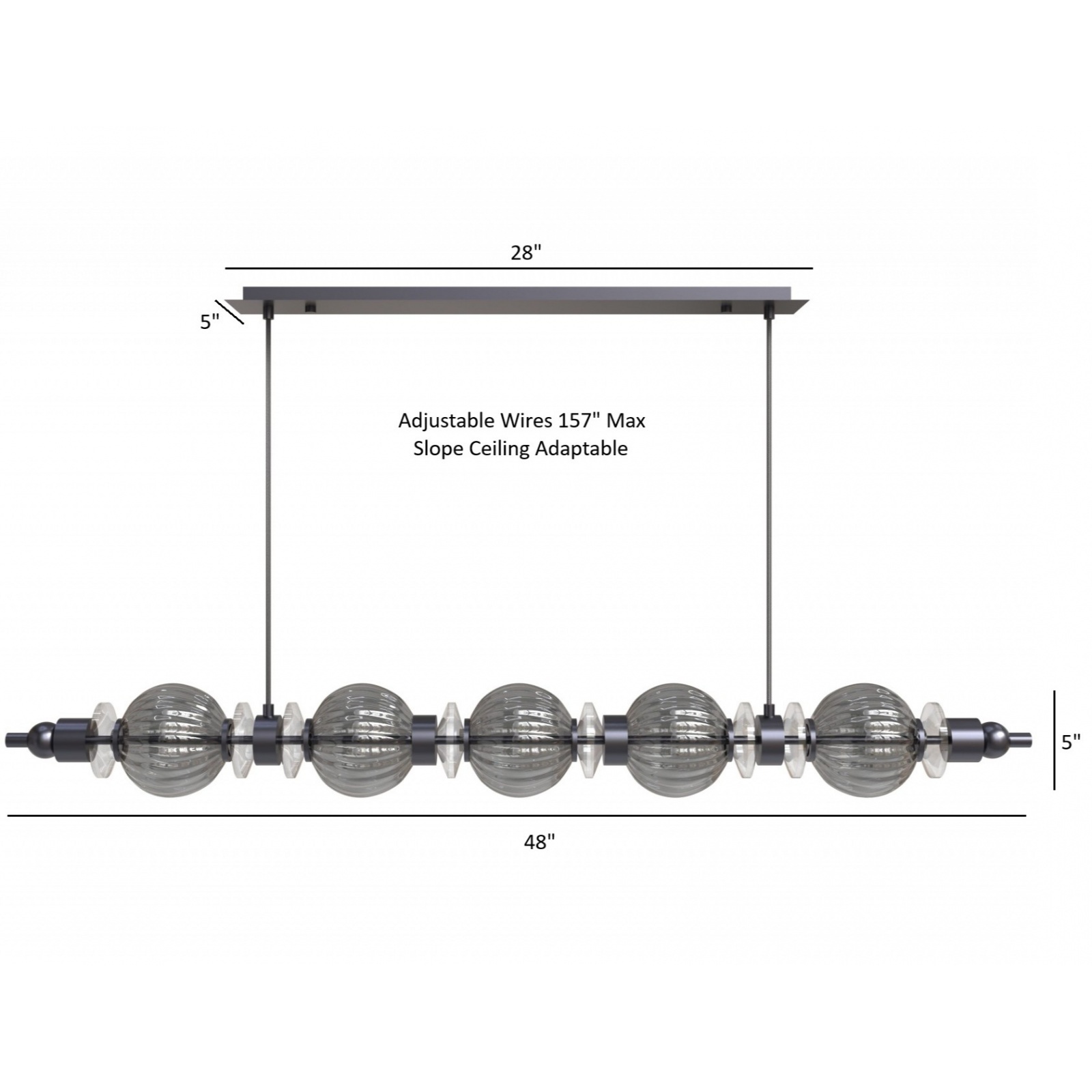 Avra 5-Light 48"W Linear LED Pendant in Black/Smoked Glass Finish by Avenue Lighting