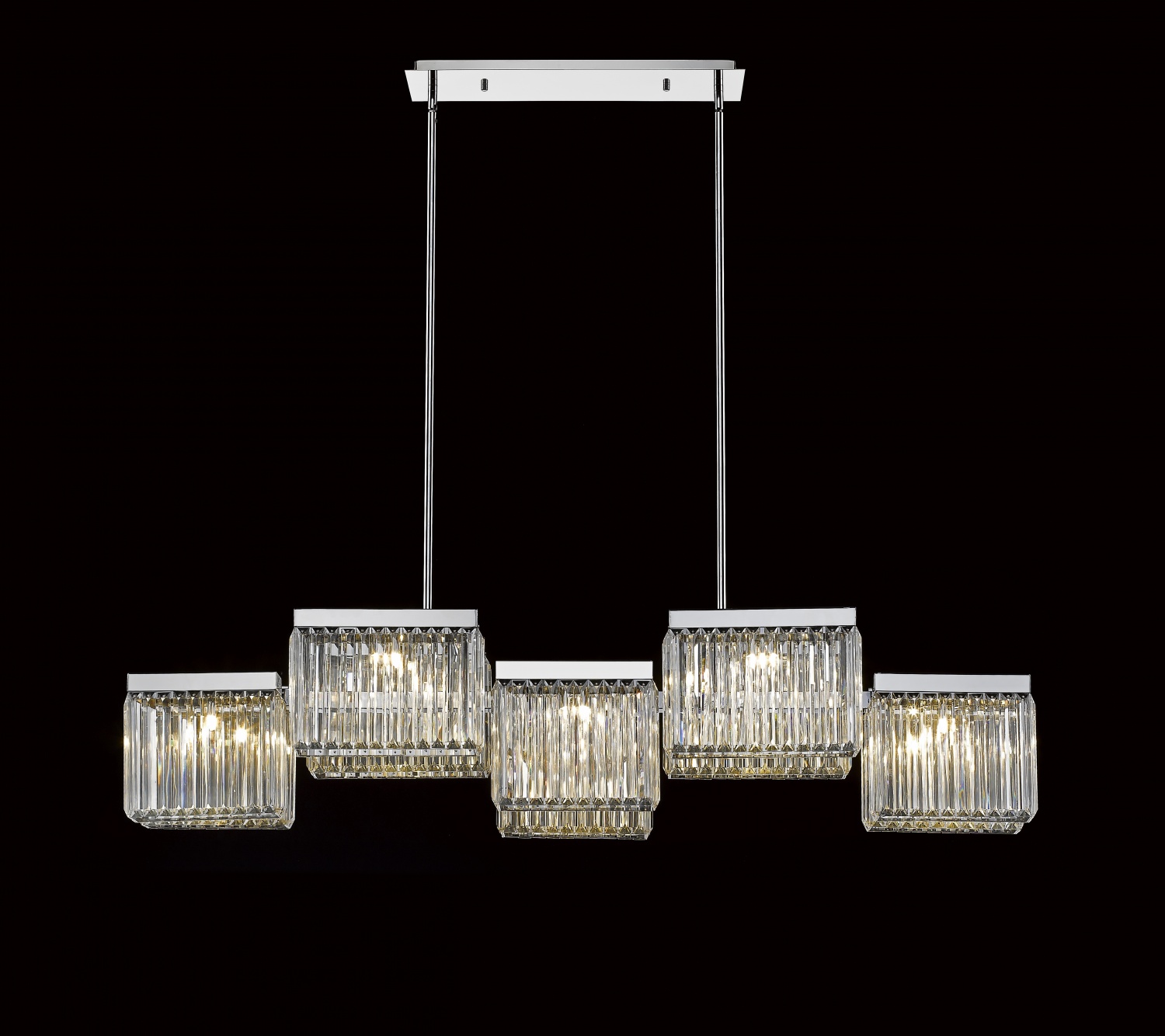 - Adorned with clear crystal elements, the chandelier offers a beautiful illuminated prismatic effect, enhancing the ambiance of any room