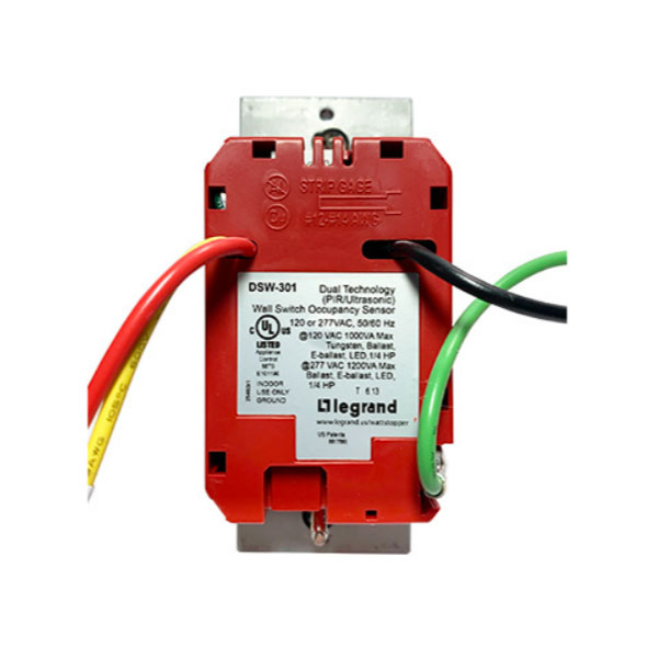 The DSW-301 dual technology wall switch sensor turns lights OFF and ON based on occupancy. It combines the benefits of passive infrared (PIR) and ultrasonic detection technologies. The DSW-301 replaces existing wall switches and fits behind a standard decorator wall plate.