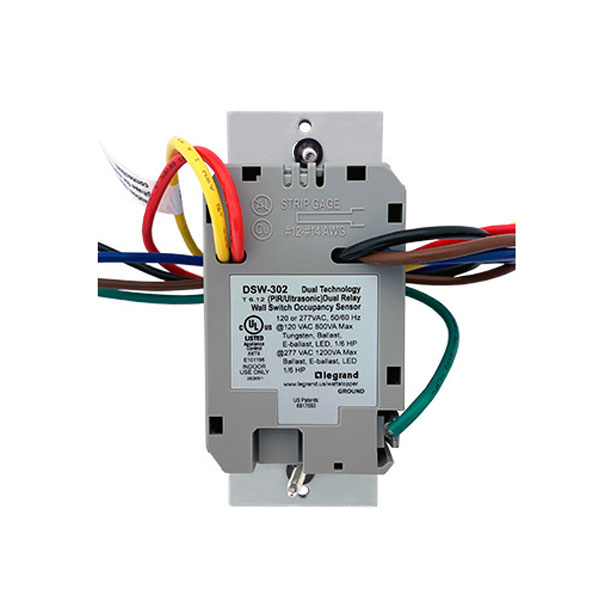 DSW-302-G, Dual Tech, Dual Relay Wall Switch Occupancy Sensor, 120/277V , Gray Finish By Wattstopper