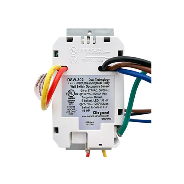 DSW-302-W-U, Dual Tech, Dual Relay Wall Switch Occupancy Sensor, 120/277V , White Finish. BAA/TAA Compliant By Wattstopper