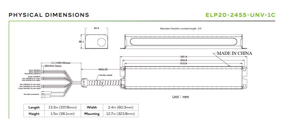 The high-efficiency performance of the Hatch ELP20-2455-UNV-1C LED Emergency Driver meets California Energy Commission (CEC) Title 20 efficiency requirements and is certified in the CA Title 20 Appliance Efficiency Database. Hatch ELP20-2455-UNV-1C allows an LED lighting fixture to be used for normal and emergency operation. In the event of a power failure, the ELP20-2455-UNV-1C switches to emergency mode and operates the existing fixture for a minimum of 90 minutes. All of the LED Emergency Drivers in the Hatch line include a test switch with integrated charge indicator and are UL Listed for field or factory installation.