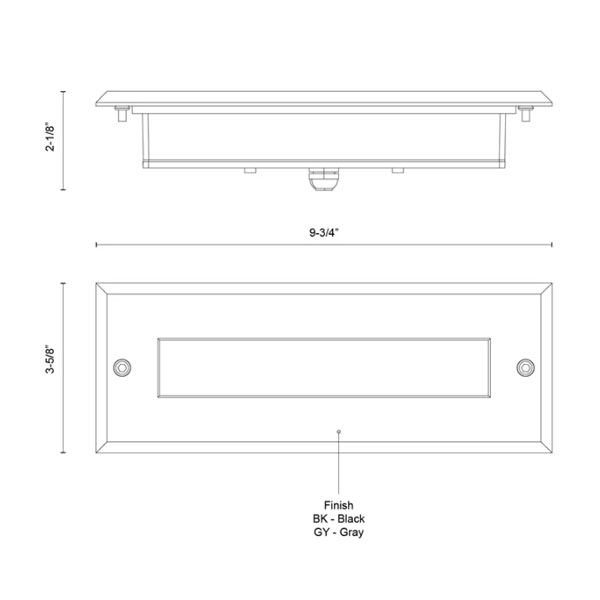 This 10 inch long exterior recessed light is simple and beautiful. The rectangular die-cast aluminum housing acts as a border for the rectangle of LED light. Bristol’s polymeric diffuser ensures you never have hot spots of light. Use in both exterior and interior locations. Requires either back-box with fixture ER72410- MBOX (Dry Location) or ER72410-CBOX (Wet Location). Back-box sold separately.