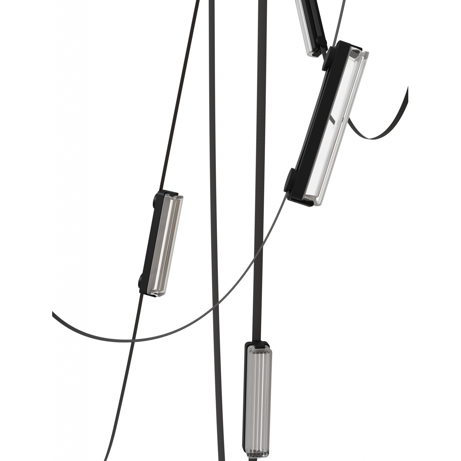The Fremont Belt Collection is a customizable belt chandelier designed for creative expression. Available in black or ivory with 3-, 5-, or 7-light configurations, it allows additional glass components to be added—supporting up to fifteen fixtures on a single run. Bold or intimate, Fremont adapts to your space.
