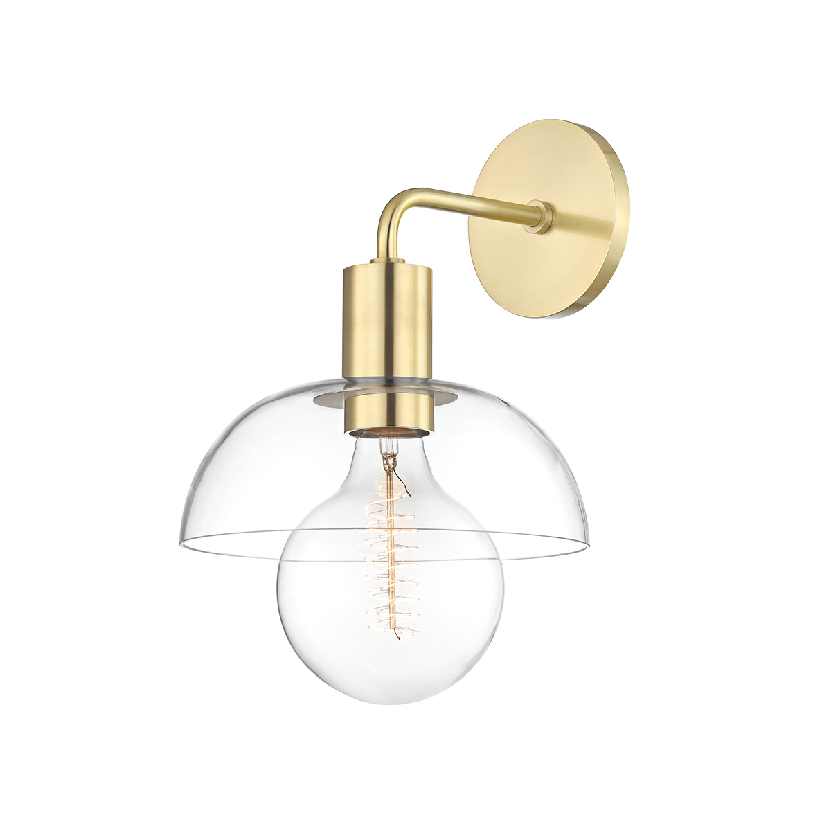 Globe bulbs peek from beneath dome glass shades to give this sleek fixture a vintage vibe. Light shines through the clear glass shade of the sconce, semi flush and pendant while the opal glossy shade of the bath and vanity fixture gives off a softer glow.