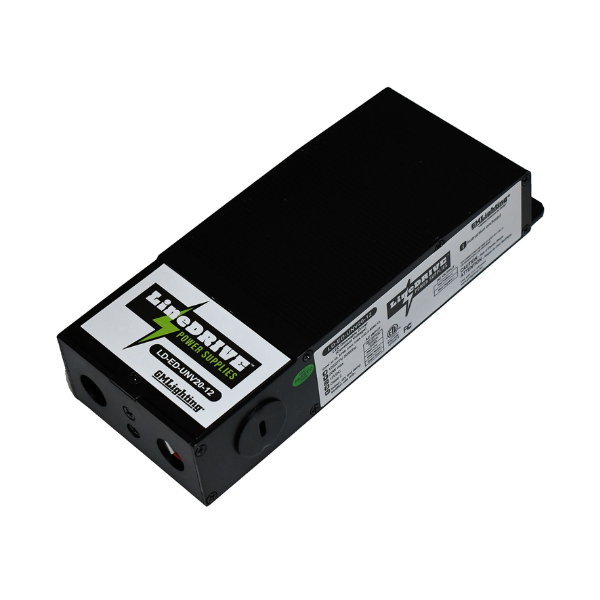 LineDRIVE Series 12VDC / 24VDC Electronic LED Power Supplies with low voltage outputs and are designed to work with standard ELV/Incandescent TRIAC (leading edge) dimmer switch. Encased in a low profile light weight aluminum enclosure that includes multiple knock-outs to enable easy installation.