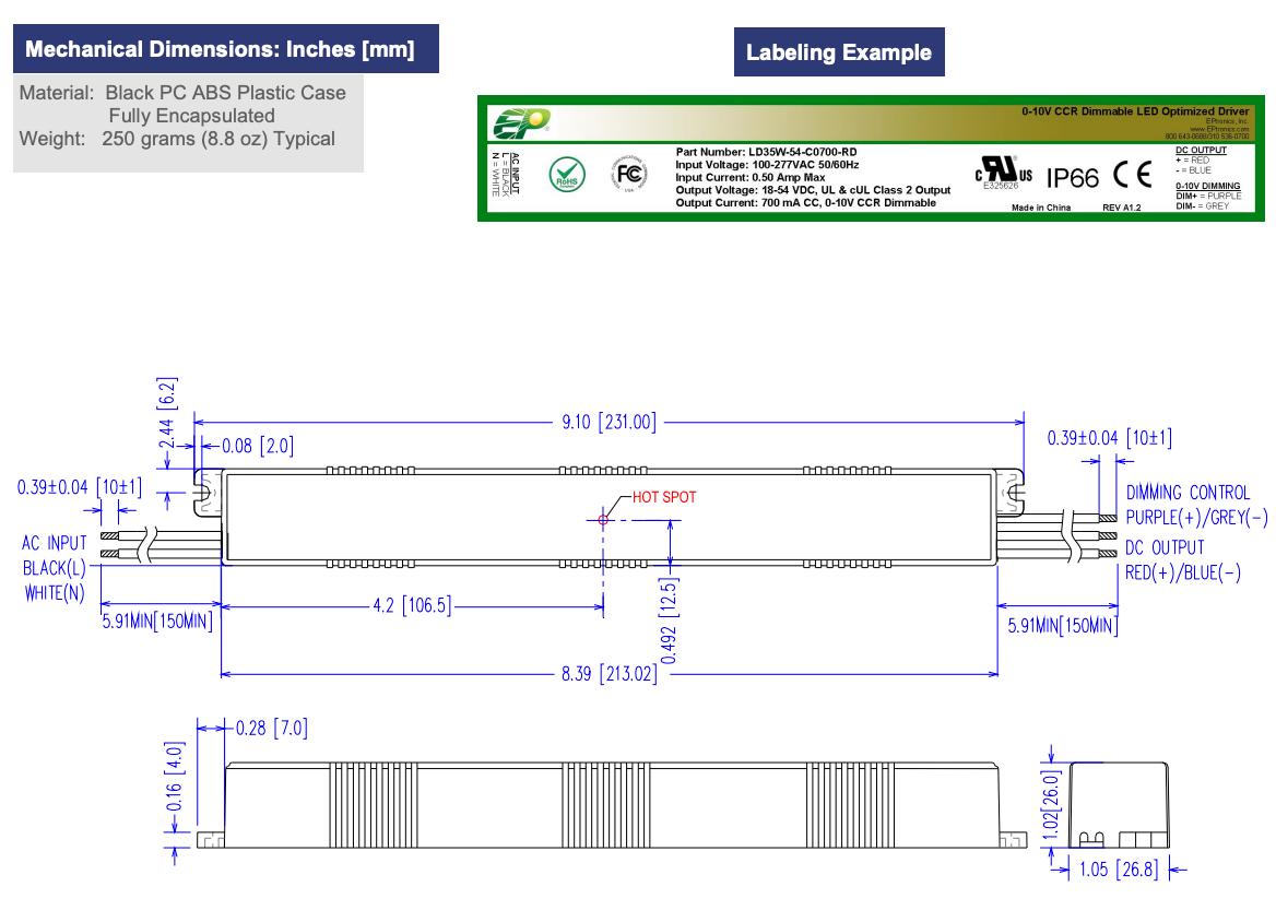 UL8750, UL1310 for Class 2, UL1012 for Non Class 2, EN61347 CSA 22.2 compliant