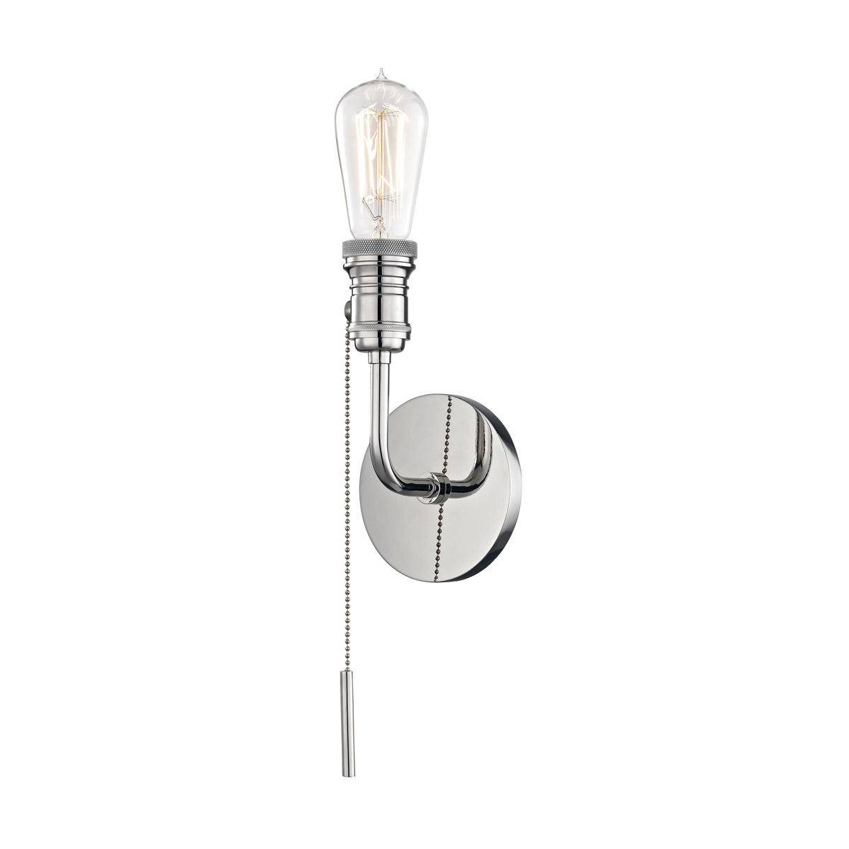 Features a sleek, vintage-inspired design with an exposed bulb for a touch of industrial charm. A functional pull chain adds convenience while enhancing its timeless appeal.