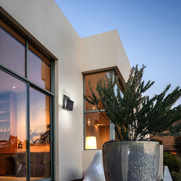 and interior use. Dual LED sources generate a large and pleasing pool of light on the mounting surface, plus a second concealed source of light aimed to the floor that packs sufficient punch to light paths of egress, delineate architectural forms in deck spaces, etc.