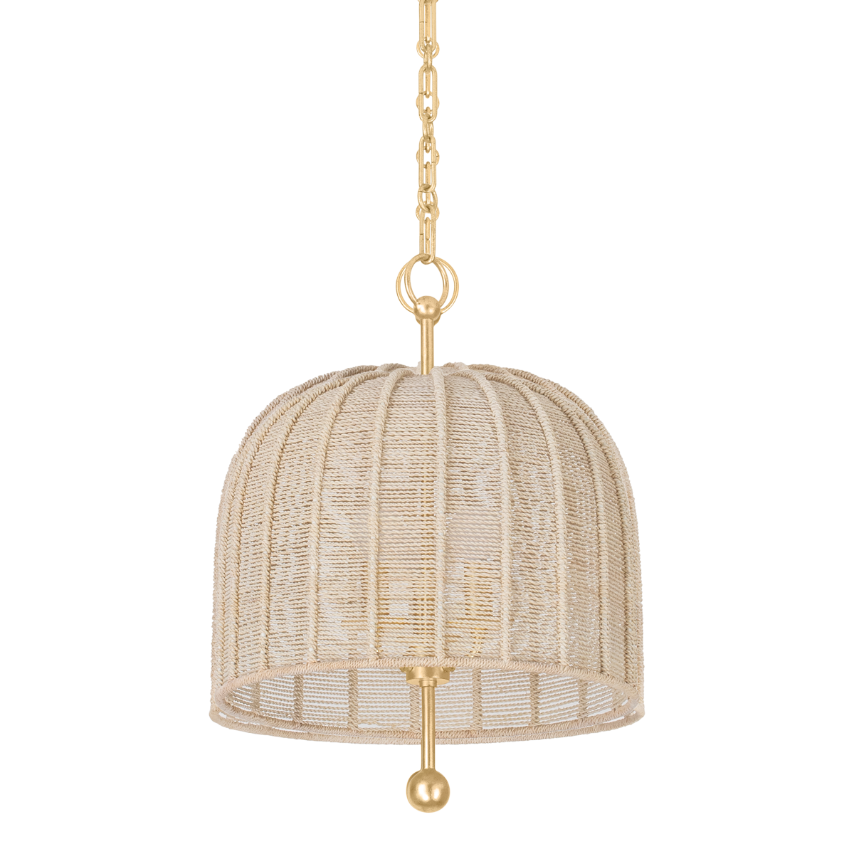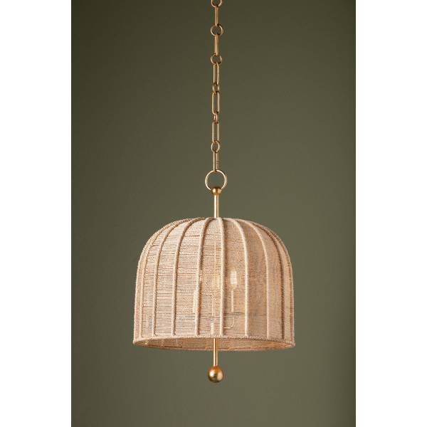 Tipping its cap to designer Hans-Agne Jakobsson, Lonnie rethinks the materiality of his classic umbrella-shaped shade. In this interpretation, the frame of the shade is wrapped in Bleached Abaca rope, allowing light to pass through. As a design detail, the Vintage Gold Leaf stem suspending the shade appears to pierce through the entire fixture, finishing in a decorative sphere. Lonnie is available in two sizes with 3 or 4 lights.
