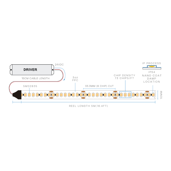 Ordering Code: LEDTP/2835/HD240/23/30K/IP54/24V/HE/5M