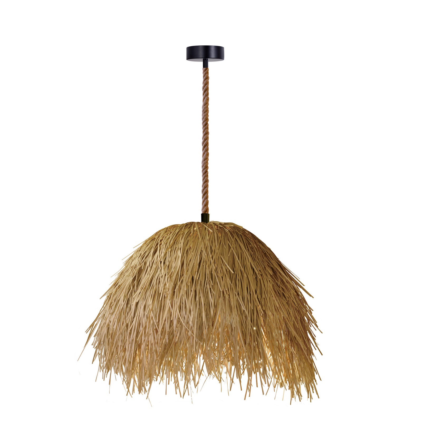 The Malibu Collection pendant features interwoven rope that forms a delicate, textured tapestry, allowing soft light to filter through while a wide rope accent adds a bold, rustic touch with modern character.