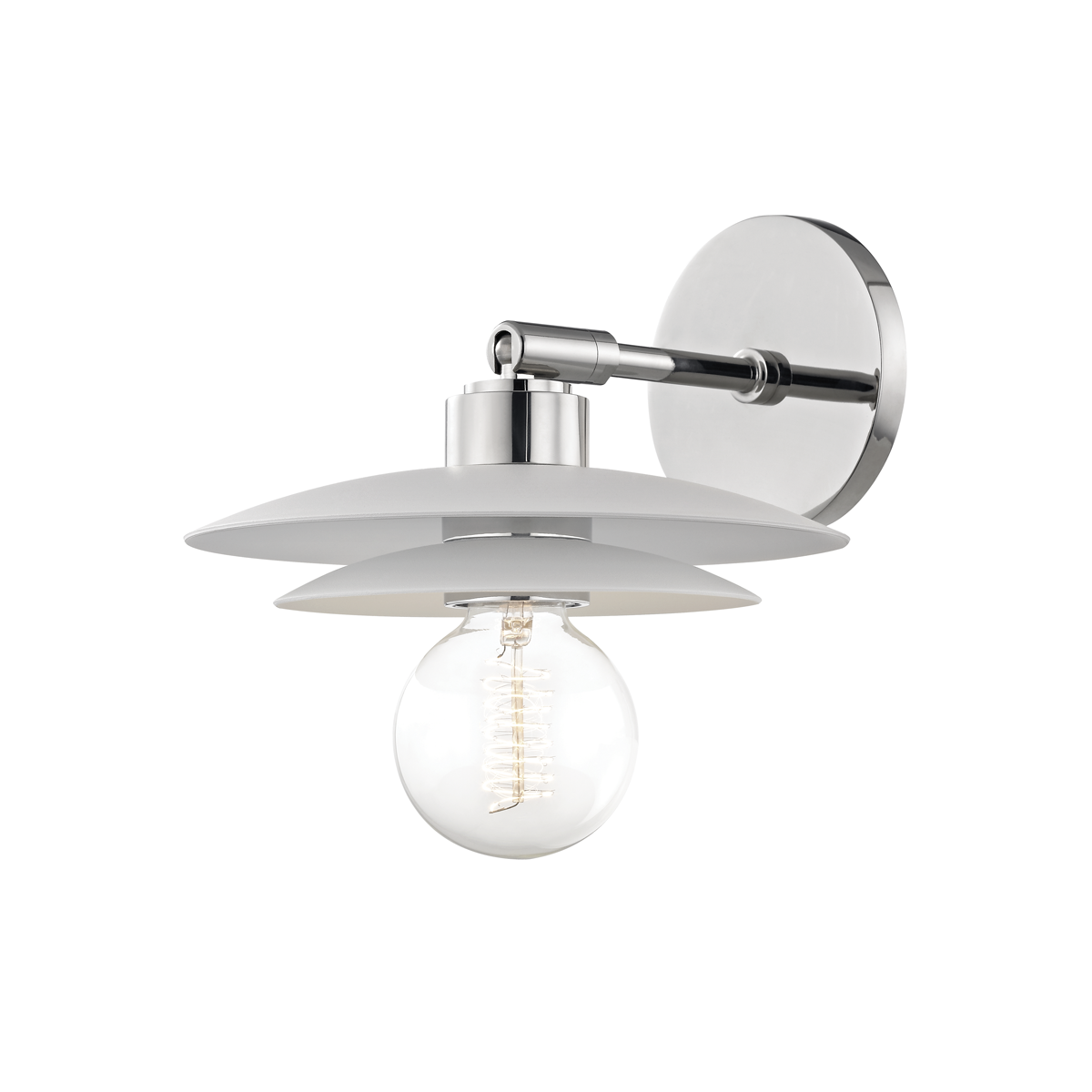A minimalist design with a smooth, cylindrical shade and a sleek polished nickel finish. Its compact structure, paired with a single bulb, provides a refined, modern aesthetic, ideal for enhancing contemporary spaces with soft, ambient light. The versatile design ensures it can be incorporated seamlessly into various interior styles.