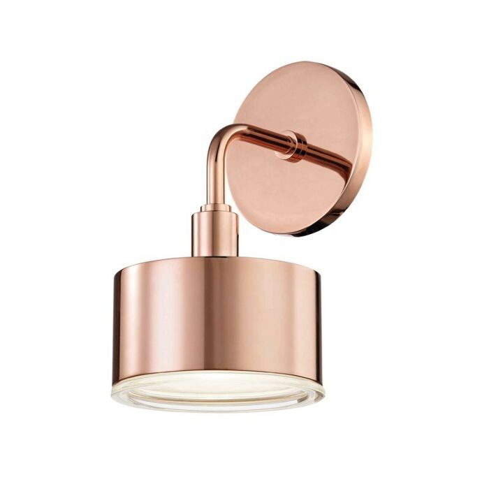 Features a cylindrical opal glass shade and a sleek polished copper finish, offering a clean, contemporary look. Its compact and modern design makes it a versatile choice for various spaces.