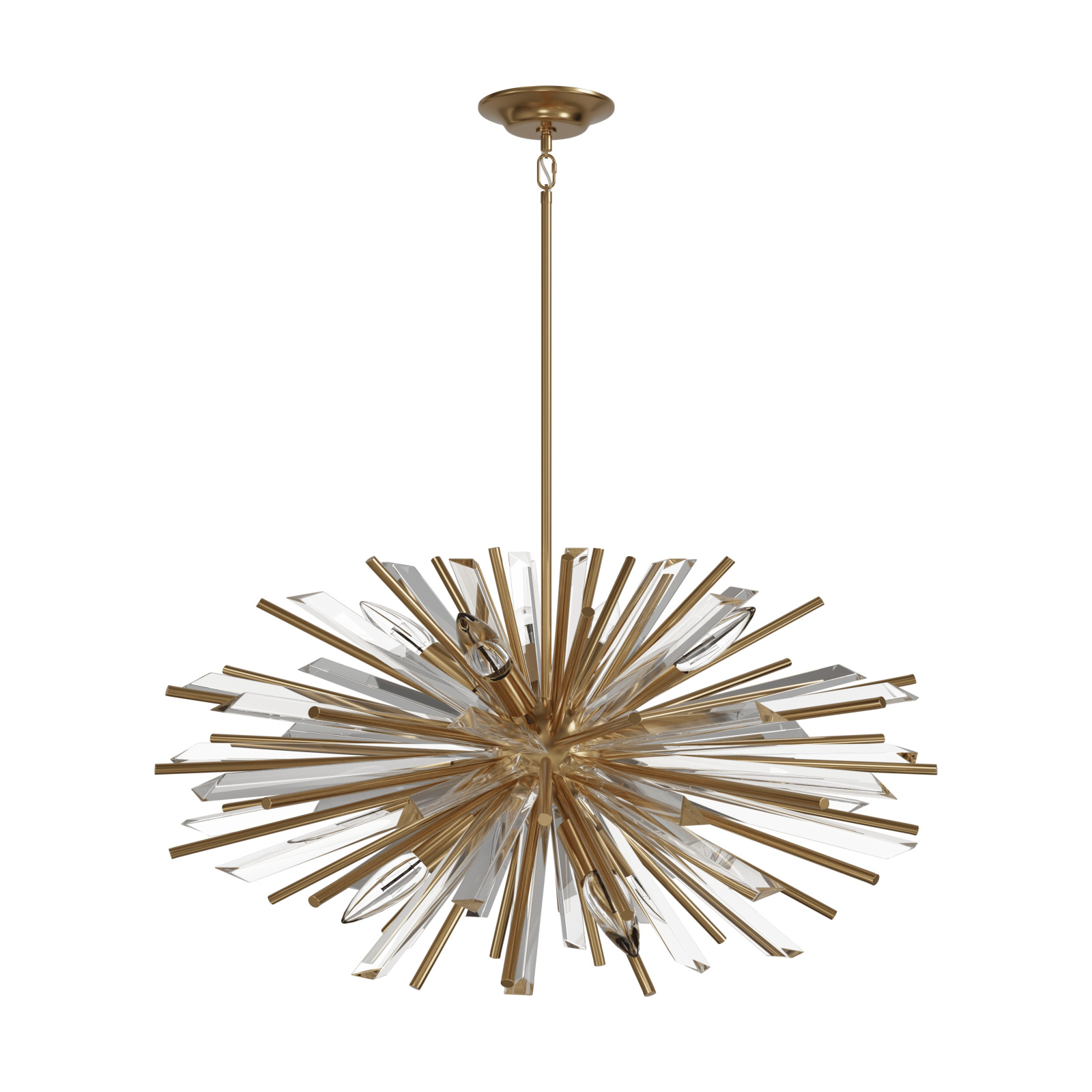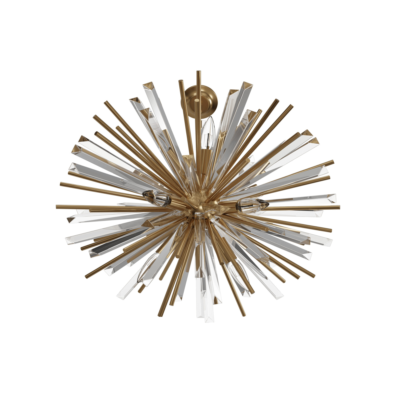 The Palisades Collection features a metal frame with a Sputnik-inspired silhouette, accented by radiant crystal and metal spokes, creating a glamorous and sophisticated statement.