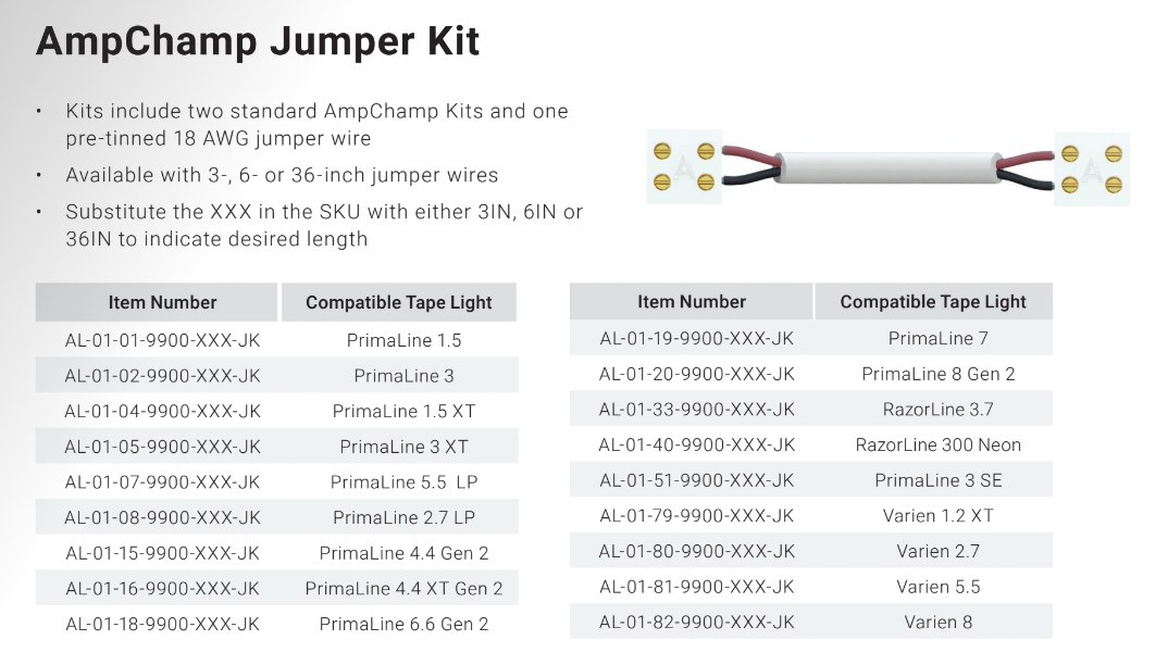 PrimaLine 5.5 LP Tape Light AmpChamp 6" Jumper Kit by Alloy LED