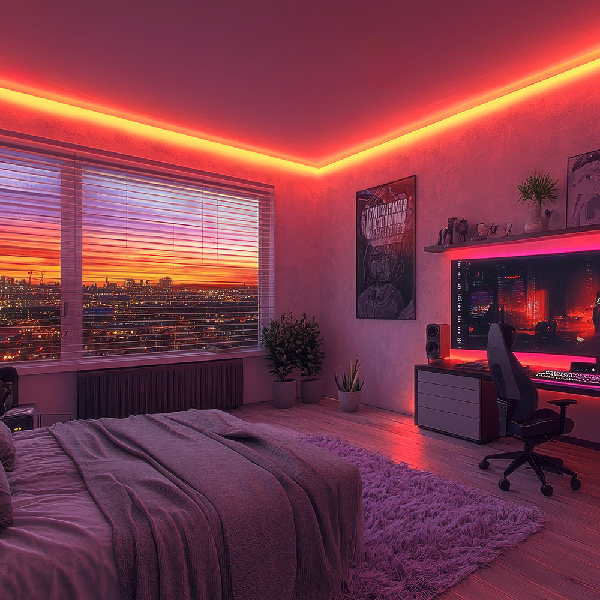 Combining dynamic color-changing (RGB) capabilities with tunable white light (2700K–6500K), all in a dot-free COB format, this tape light offers seamless illumination and fivechannel control for unlimited design flexibility for color-rich architectural accents, immersive environments, and highend residential or commercial spaces.