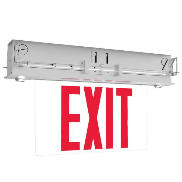 The S900C Series combines the architectural design of an edge-lit exit sign with fully adjustable recessed emergency LED lamp heads for a modern, low-profile aesthetic. The S900C Series is designed for easy recessed or surface mount installation in ceilings or walls.