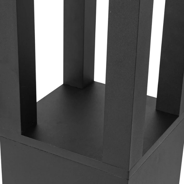 Architectural designed high powered LED exterior bollard fixture, high pressure die-cast aluminum square-shaped housing with four rectangular-shaped openings which radiates the light downward and throughout all openings and surrounding areas of the bollard. Available in two different heights and IK10 Rated.