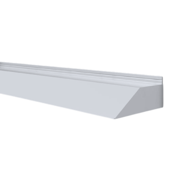 Surfa KnifeEdge 4 in. is a surface-mount channel with an illuminated reveal that creates a vanishing cove effect when mounted horizontally below a ceiling. Its grooved underside allows for easy mud-in and painting to blend into any space.