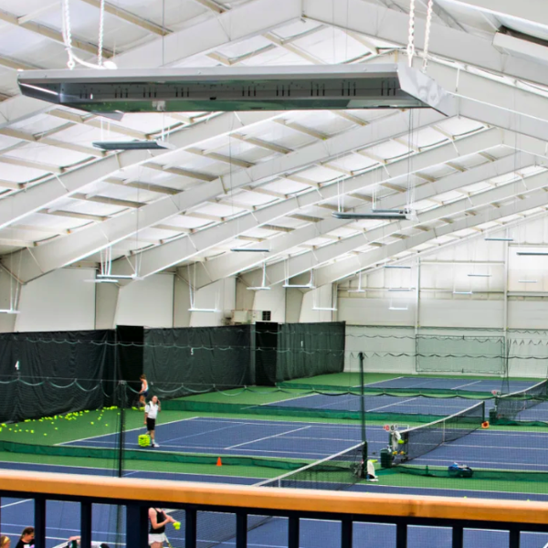 The ILP Tennis Court Premium High Bay is a high-efficiency luminaire designed specifically for tennis courts. It features an aluminum body with a steel channel, inverted mounting for indirect distribution, a tool-less hinged ballast access door, polycarbonate lens, dual-point chain or cable hanging, multiple dimming and sensor options, 0-10V dimming driver, and is ETL damp location rated.