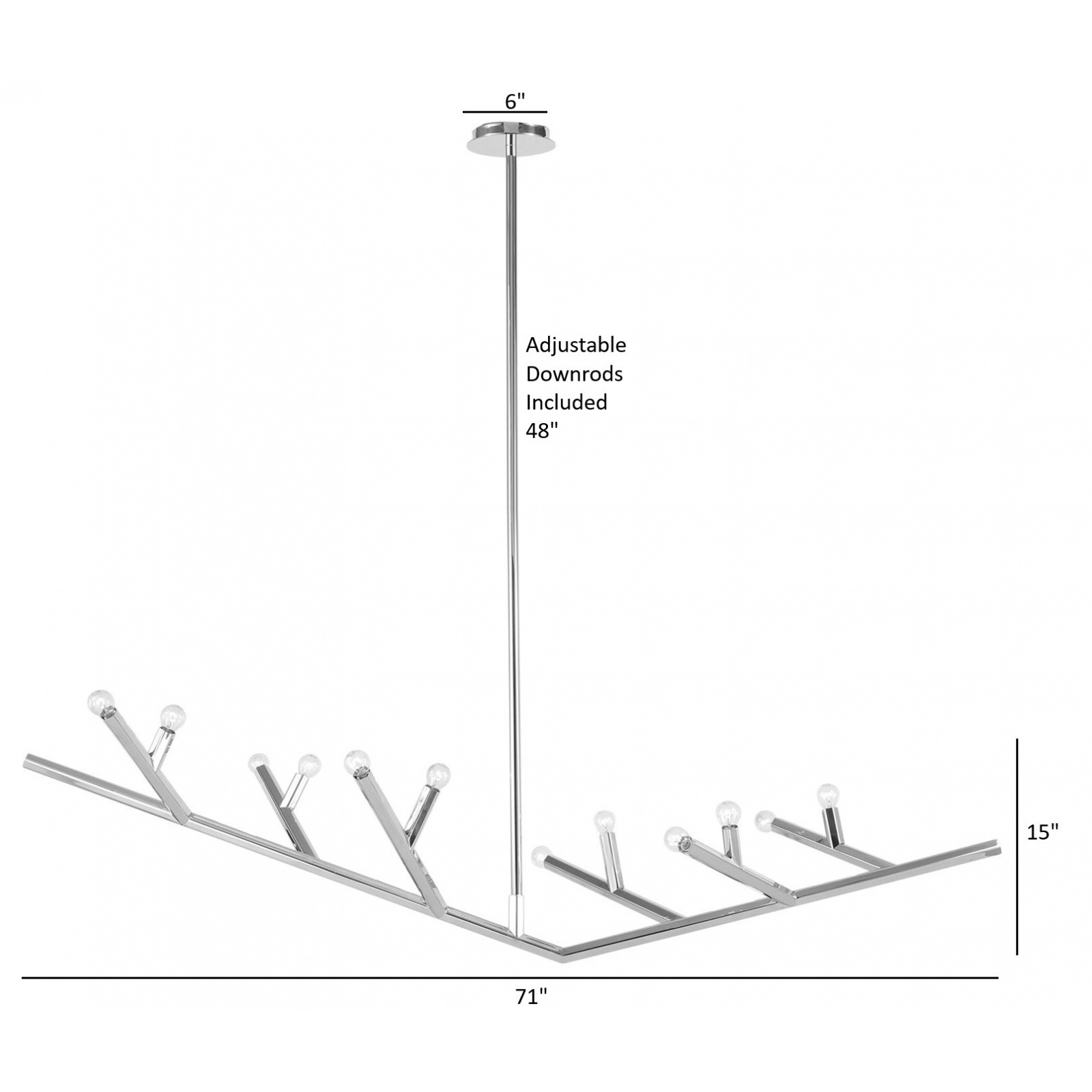 The Oaks Collection chandelier combines angular lines with branch-like forms to create a striking, contemporary design. Its sleek, geometric styling adds casual sophistication, making it a bold and elegant statement piece for your space.