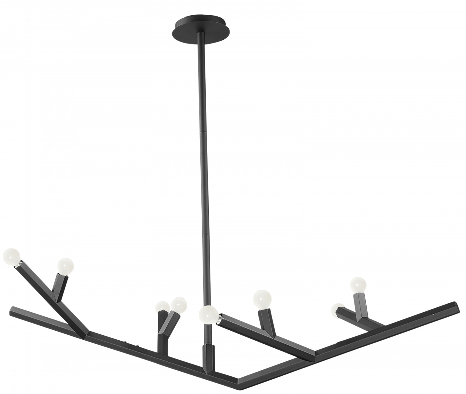 The Oaks Collection chandelier combines angular lines with branch-like forms to create a striking, contemporary design. Its sleek, geometric styling adds casual sophistication, making it a bold and elegant statement piece for your space.