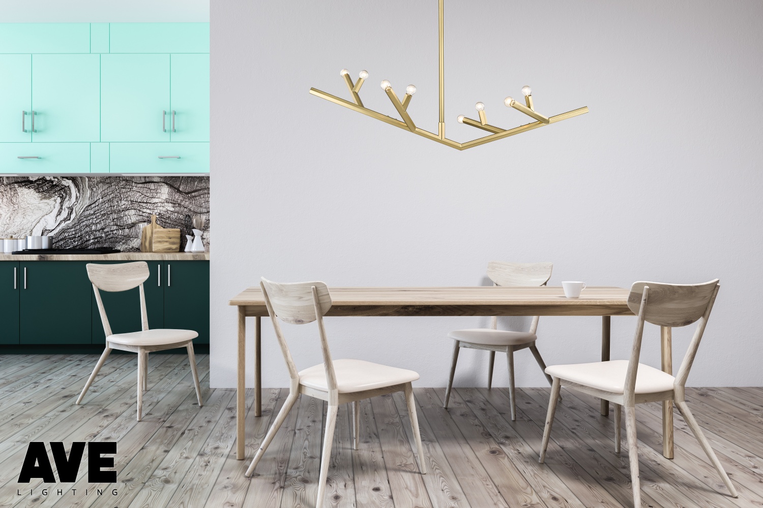 The Oaks 8-Light 52"W Chandelier in Brushed Brass Finish by Avenue Lighting