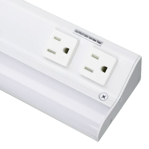 The LED Courant is an easy-to-install, under cabinet task light with built-in 15A tamper resistant power receptacles. With a quickaccess door to the wiring compartment and convenient push-in wire connectors, the LED Courant removes the visual clutter of in-wall receptacles while providing 90 CRI, 5CCT light selection.