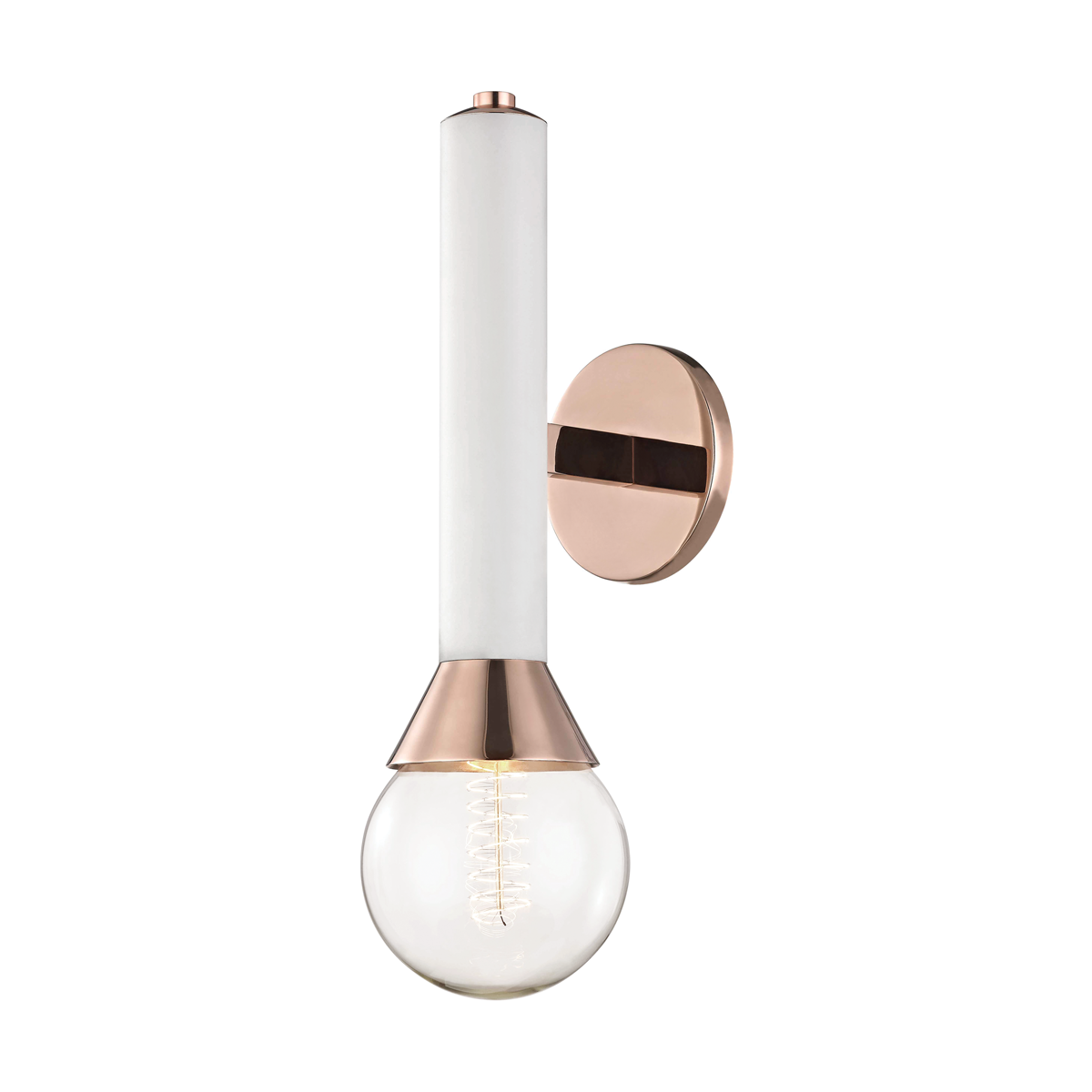 The Via Wall Sconce by Mitzi features a striking cylindrical design with a clean, minimalist aesthetic. Its sleek structure, paired with a contrasting finish, makes it an elegant addition to contemporary spaces. The sconce provides soft, ambient lighting, perfect for enhancing the atmosphere of any room.