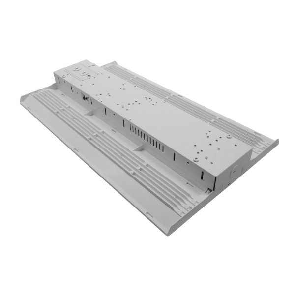 DESIGN. - LED LINEAR HIGH BAY WITH Q-BASE has a built-in motion sensor base, allowing you to install microwave or PIR motion sensor. Die-cast aluminum housing with excellent heat dissipation along with an anti-glare PC lens provide many years of use. It is designed to operate on 277-480V circuits with a 0-10V dimmable driver.