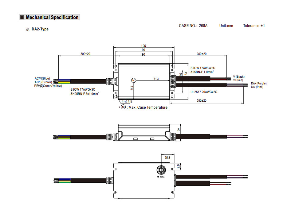 XLG-50-DA2 series is a 50W AC/DC LED driver featuring the constant power mode output. XLG-50-DA2 operates from 90~305VAC. Thanks to the high efficiency up to 89%, the entire series is able to operate between -40 °C ~ +85 °C wide case temperature range with air convection. The design of metal housing and IP67 ingress protection level allows this series to fit both indoor and outdoor applications. XLG-50-DA2 is equipped with various function options, such as dimming methodologies, so as to provide the optimal design flexibility for LED lighting system. XLG-50-DA2 series comply with the latest version of IEC61347/GB19510.1 and UL8750 international safety regulations. The output and dimming circuit are also completely in accordance with the new regulations with isolation to ensure the safety of both user and luminaire system during installation.