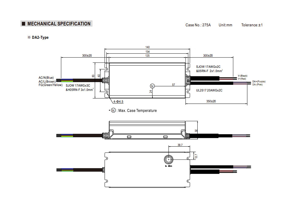 XLG-75-DA2 series is a 75W LED AC/DC driver featuring the constant power mode with DALI-2 dimming function . XLG-75-DA2 operates from 100~305VAC and offers models with different rated current ranging between 700mA and 2100mA . Thanks to the high efficiency up to 90 % , with the fanless design , the entire series is able to operate for - 40°C~+90°C case temperature under free air convection . The design of metal housing and IP67 ingress protection level allows this series to fit both indoor and outdoor applications . Moreover the innovative environment-adaptive capability allows this series to reliably light on the LEDs for all kinds of application environments in almost any spots that may install LED luminaires in the world . XLG-75-DA2 series comply with the latest version of IEC61347/GB19510.1 and UL8750 international safety regulations . The output and dimming circuit are also completely in accordance with the new regulations with isolation to ensure the safety of both user and luminaire system during installation .