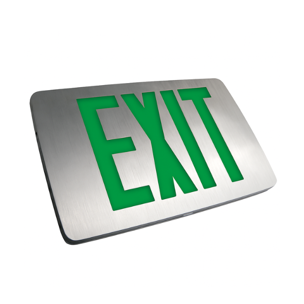 400U Series Die-cast Aluminum LED Exit Sign, Green Letters, Universal Face, NiCad Battery, Brushed Aluminum w/ Aluminum Face by Exitronix
