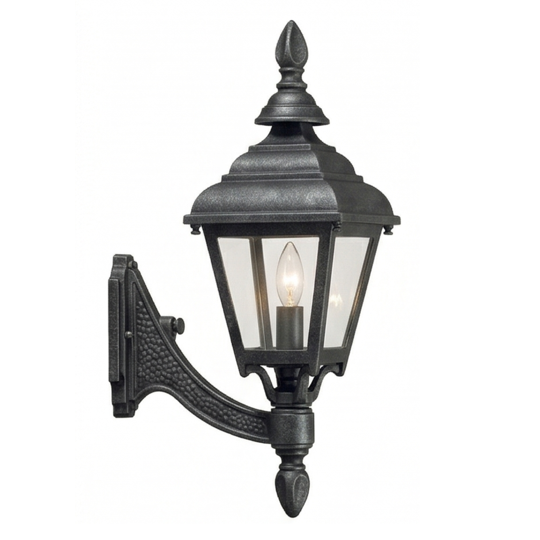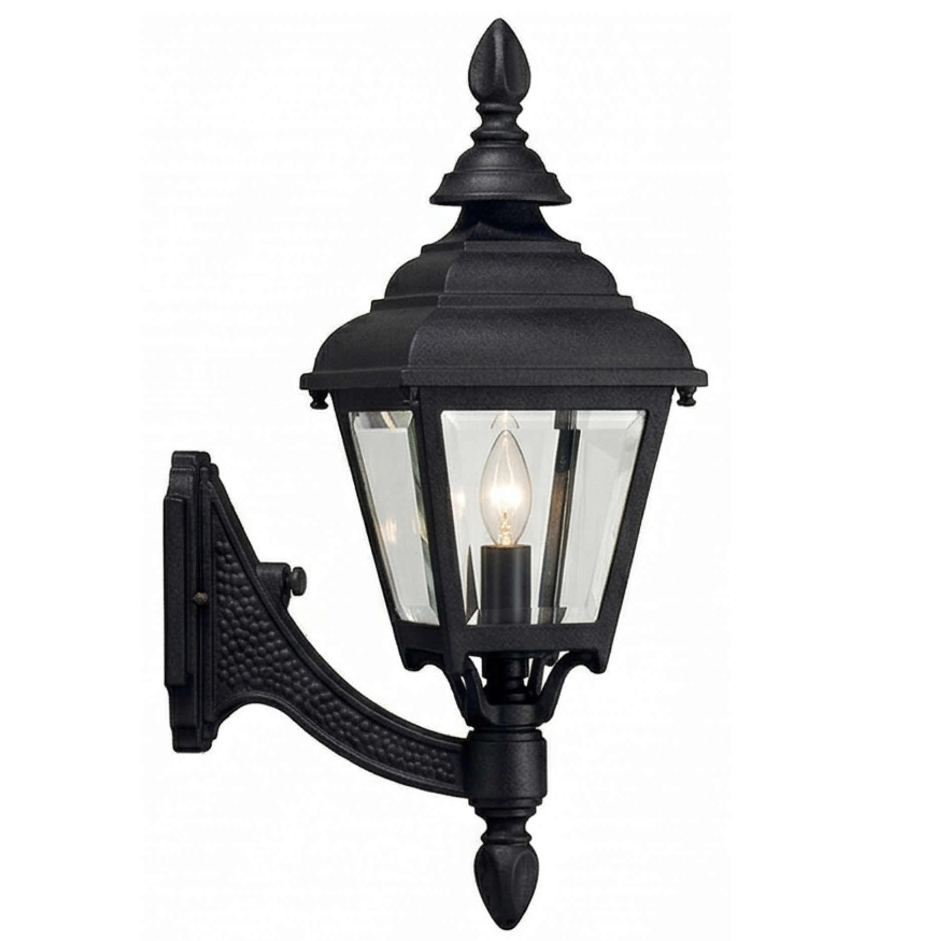 16" Plymouth 4-Sided Wall Mount, E26, Clear Beveled Glass/Black Finish by Hanover Lantern