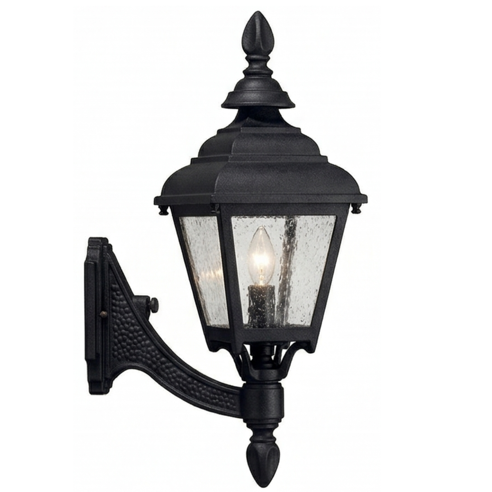 16" Plymouth 4-Sided Wall Mount, E26, Clear Seeded Glass/Black Finish by Hanover Lantern