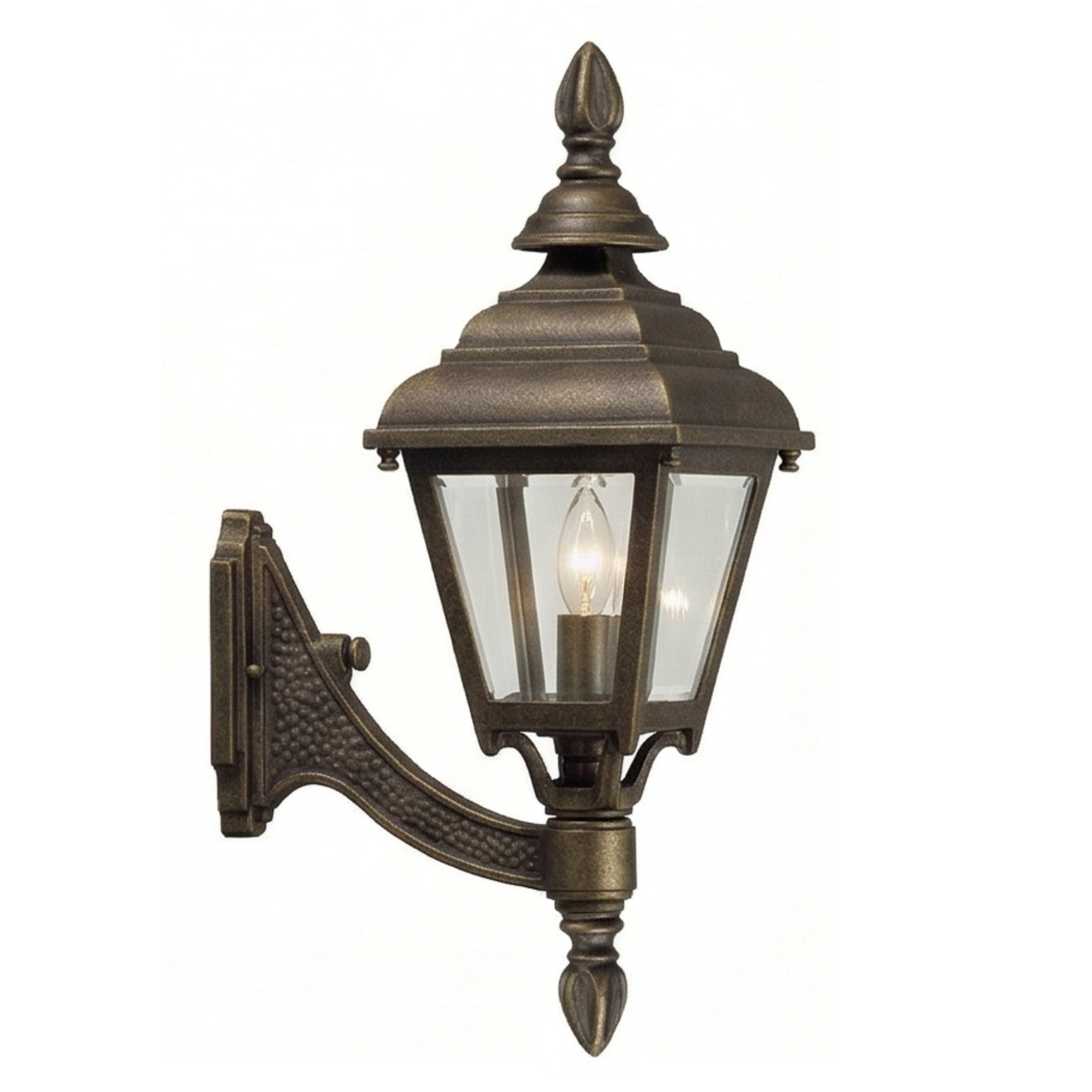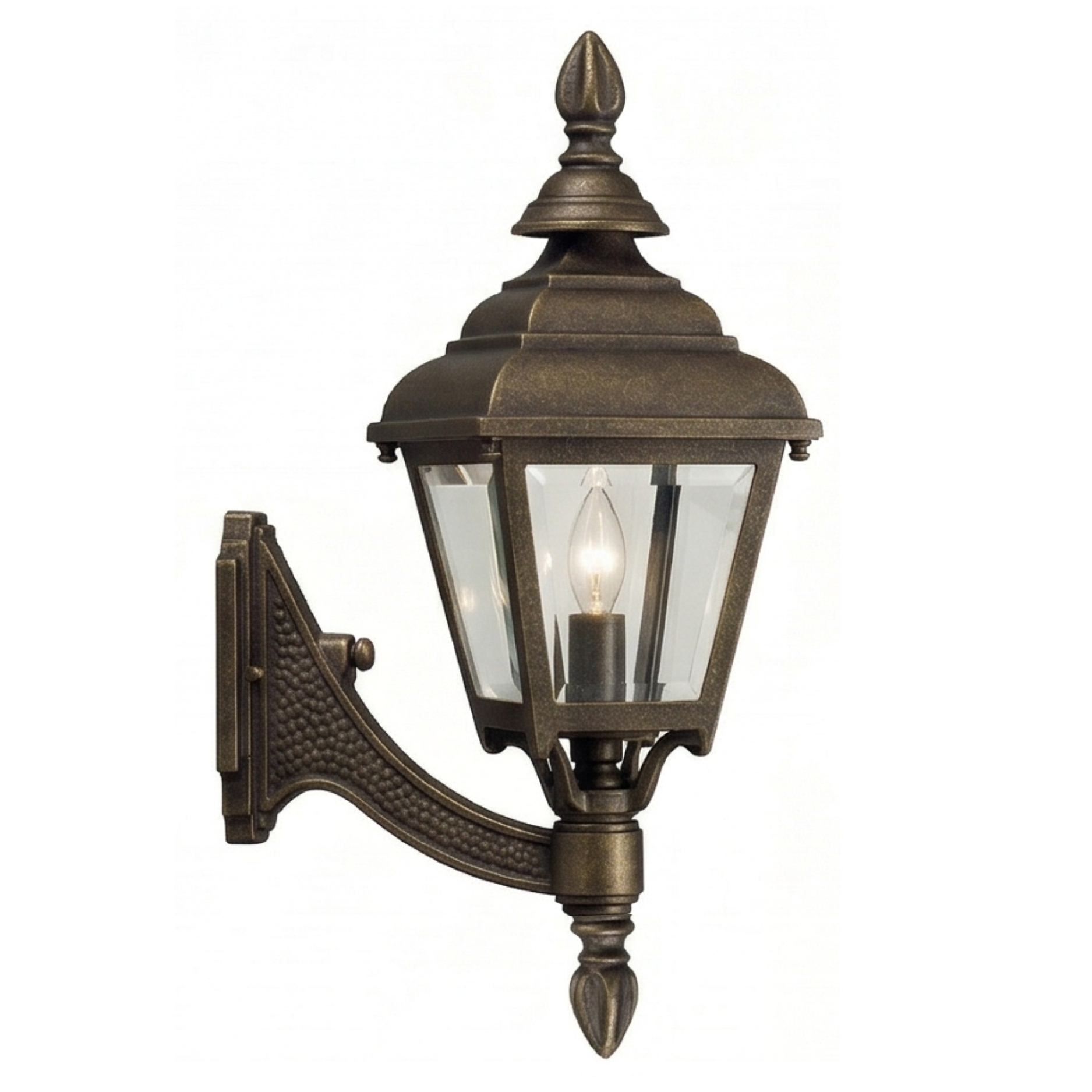 16" Plymouth 4-Sided Wall Mount, E26, Clear Beveled Glass/Brass Finish by Hanover Lantern