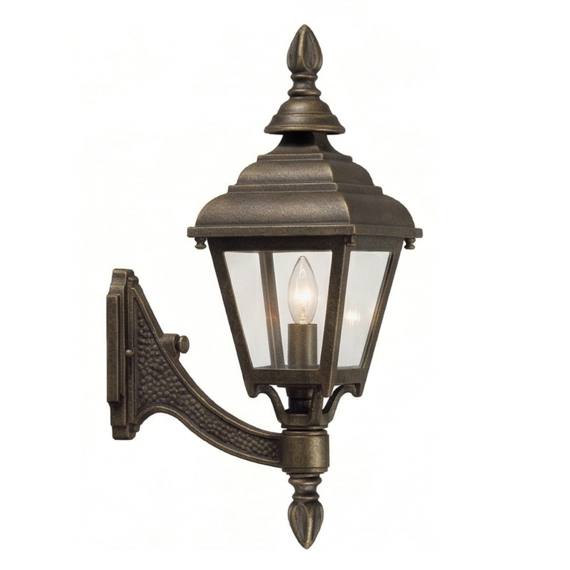 16" Plymouth 4-Sided Wall Mount, E26, Clear Glass/Brass Finish by Hanover Lantern