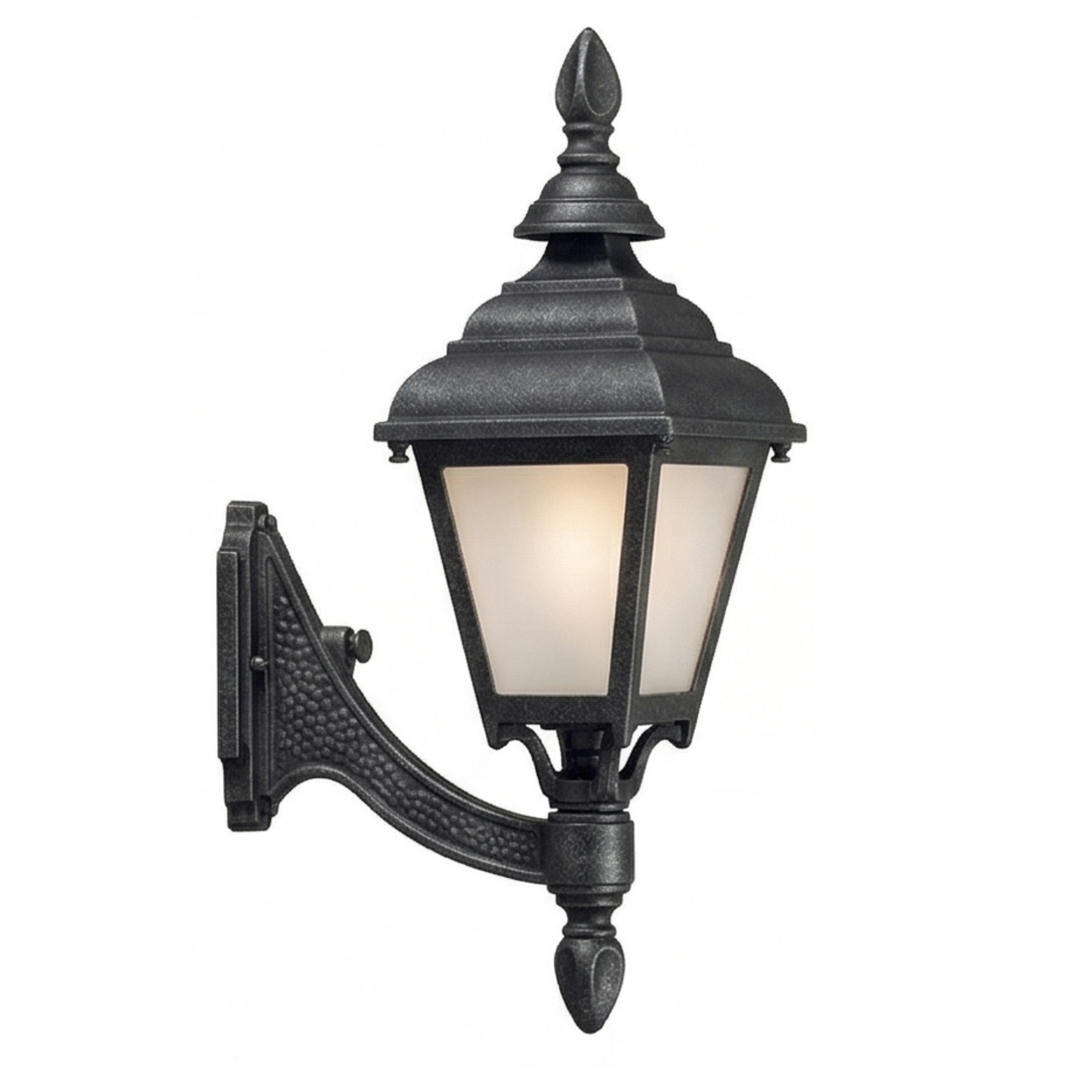 16" Plymouth 4-Sided Wall Mount, E26, Frosted Glass/Black Finish by Hanover Lantern
