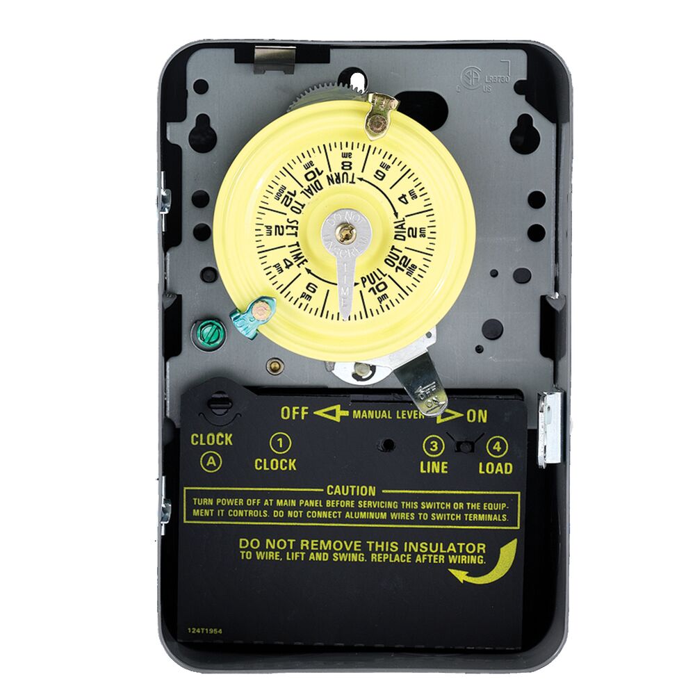 The T100 Series Mechanical Time Switch has proven it can stand the test of time. These dependable time switches can handle electrical loads up to 40 A per pole and allow for up to 12 ON/OFF operations per day. A manual override switch provides added convenience.