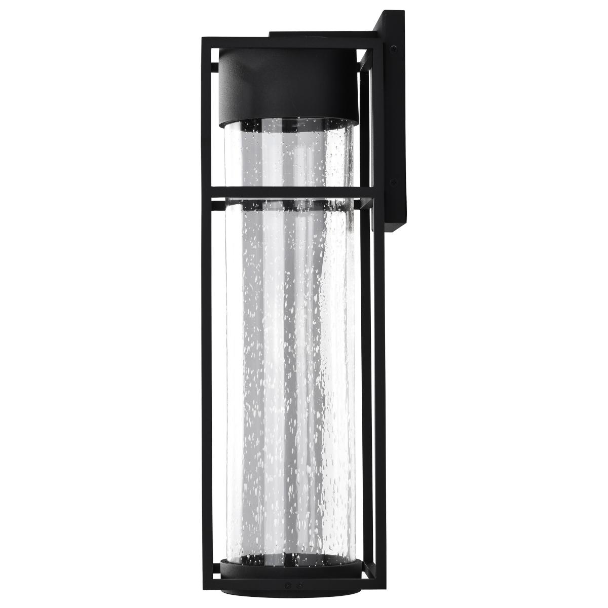 Part of the Ledges collection10W LED wall lantern with matte black finish and clear seeded glassProvides 900 lumens of warm white light at 3000KDimmable feature for adjustable brightnessConstructed from durable aluminum and glassDimensions: 22.5" height, 7" width, 7.78" extensionWet location rated, making it suitable for outdoor useEnergy-efficient with a 30,000-hour rated lifespan3-year limited warranty