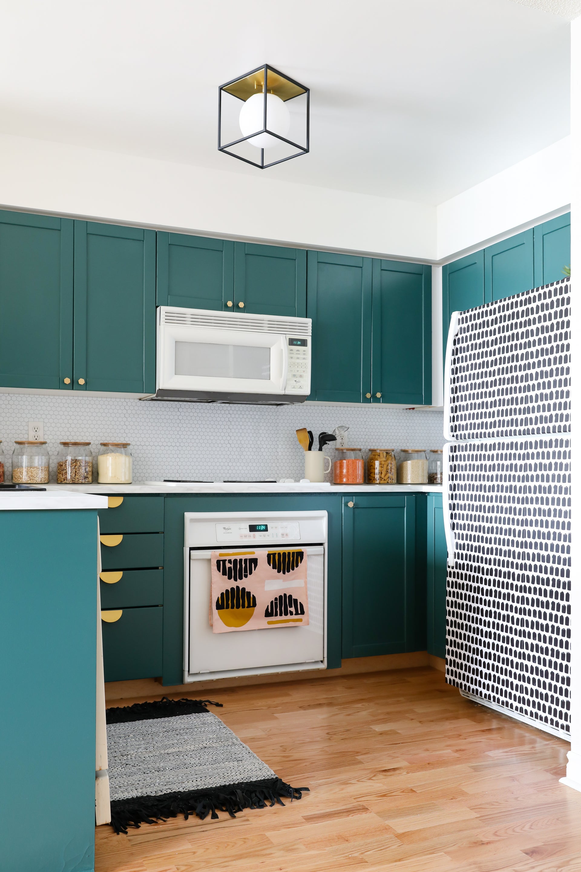 Light flows freely through the open box frame and reflects off a single metallic panel. Aira is available as a one, two, or three-light sconce perfect for your vanity space, and a transitional flush mount that comes in two sizes. Available in Aged Brass/Black or Polished Nickel/Black.