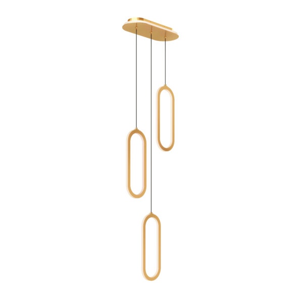 Enrich your space with the Atom three-pendant LED cluster, distinguished by a contemporary design featuring clean lines— ideal for high ceilings, and enhanced by an illuminated canopy, providing both a modern aesthetic and ample illumination.