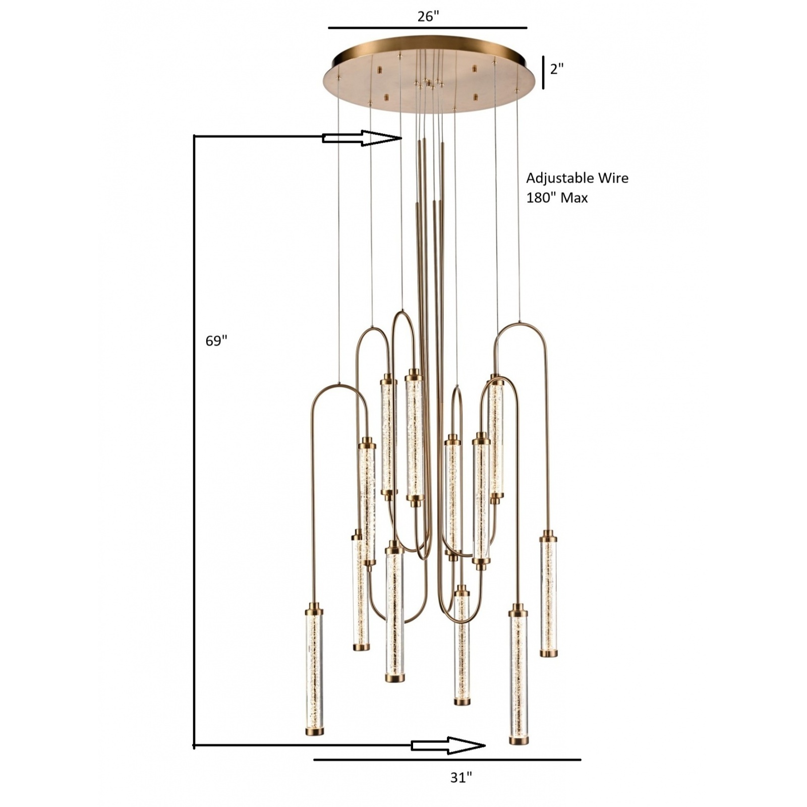 The Belvedere Collection features cylindrical gold crystal-like glass and curved gold metal arms inspired by mid-century architecture. It casts a warm, radiant glow, adding elegance and sophistication to any space.