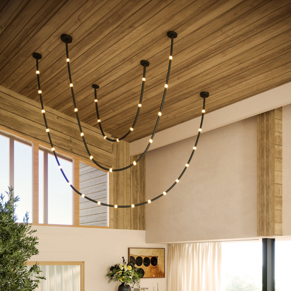 The Corda collection by Branch Creative redefines modern lighting with its adjustable fabric rope adorned with illuminated petite opal glass globes. Perfect for layering in various sizes, it transforms into an eye-catching chandelier suited to any space. Offered with standard junction box covers or remote driver options, Corda delivers versatility and a strikingly unique aesthetic.