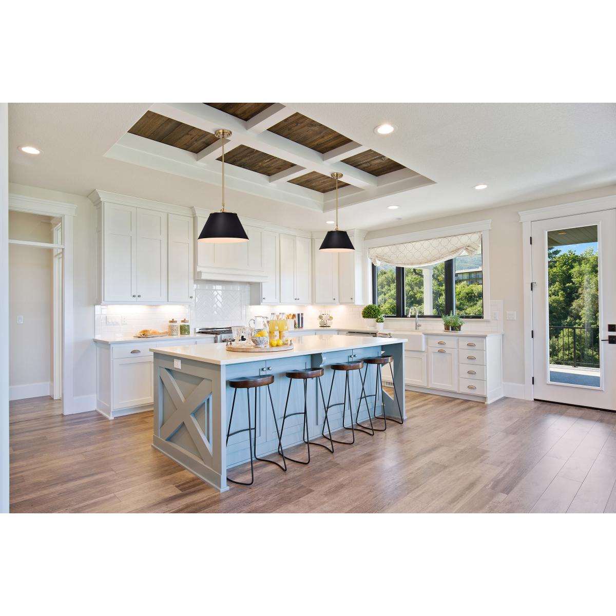 With subtle detailing, the Dover medium pendant is graceful yet unassuming. The simple black shade features a white lining to reflect the light, and the trim is finished in vintage brass to match the fixture's body. Place a trio of them over the kitchen island for added light or over nightstands in a bedroom as a permanent lighting solution.